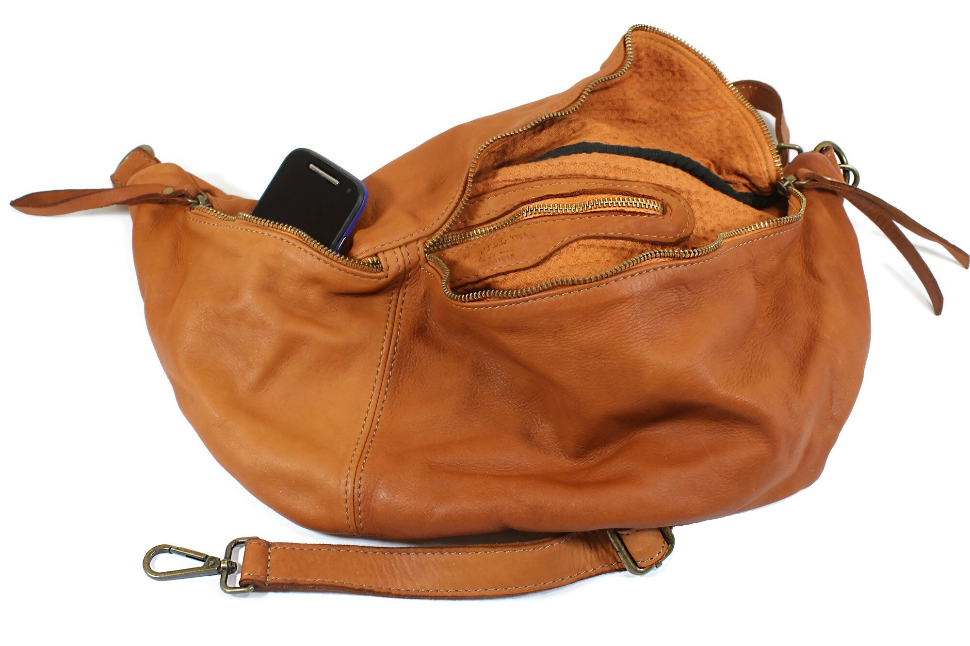 Worn across and around the body, on your waist or over the shoulder – it's on trend and a functional alternative to a conventional handbag, giving you a hands-free, lightweight bag. Ideal also when travelling, on holiday, at festivals or even hiking. But don't let its practical nature fool you – this sling bag has serious style! The super buttery soft leather is carefully handcrafted using a unique washed process, giving this bumbag an outstanding special vintage appearance and styling.